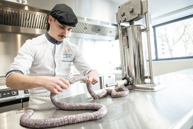 Des métiers de l’alimentation, celui de charcutier ou de charcutière, souvent associé à celui de traiteur, est certainement le plus complet. Il/elle intervient sur des préparations traditionnelles à base de viandes crues, cuites, salées, fumées ou confites. Il/elle peut mettre en oeuvre également des préparations à base de poissons ou de légumes frais. Chacune de ses interventions se fait dans le respect des règles d’hygiène et de sécurité alimentaire dont il/elle a une connaissance approfondie.